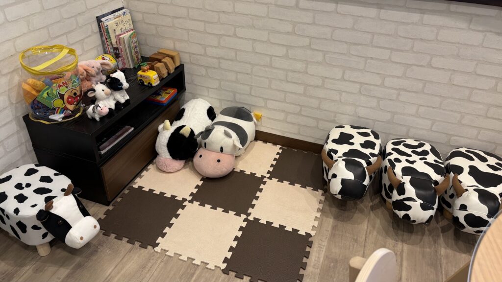 店内は可愛らしく、牛さんがいるキッズスペースもあります。